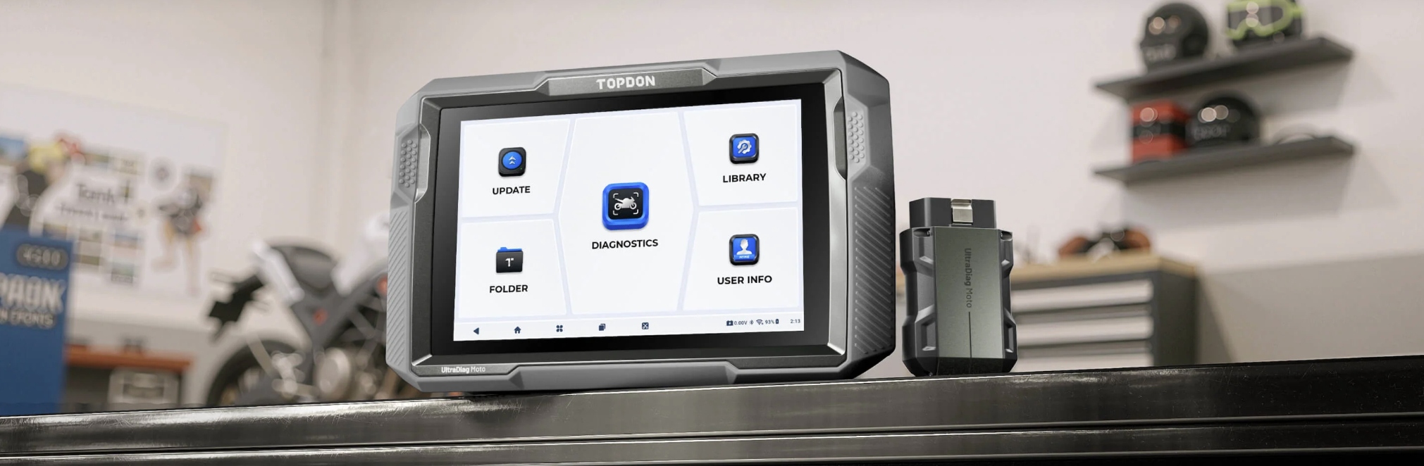 TOPDON UltraDiag Moto został zaprojektowany z myślą o doświadczonych mechanikach, którzy oczekują szybkości, dokładności i wszechstronności. Obsługując ponad 80 marek motocykli — w tym Hondę, Harleya, BMW i inne —