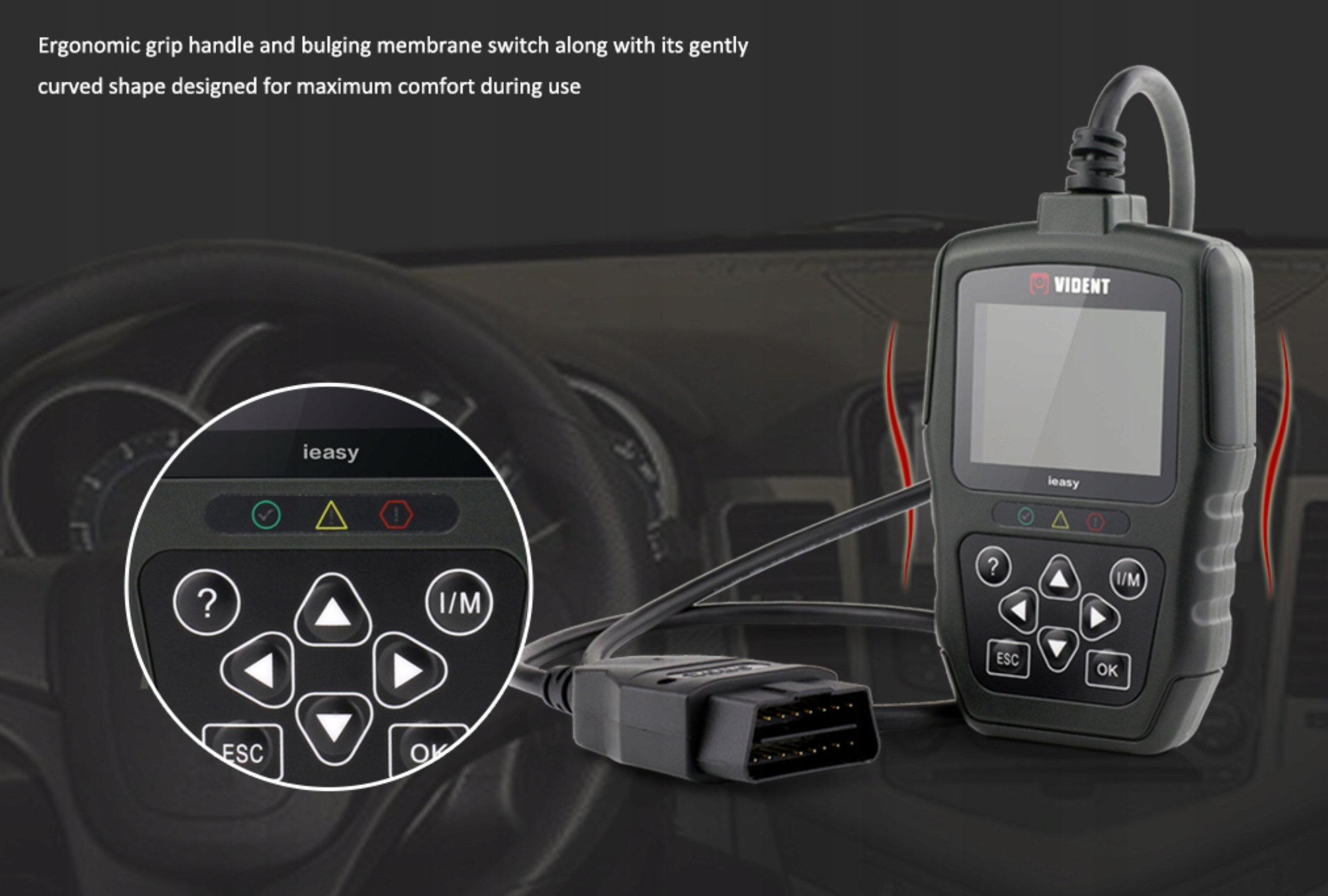 - Tester VIDENT iEasy 300 z zintegrowanym kablem OBDII zapakowany w eleganckie pudełko